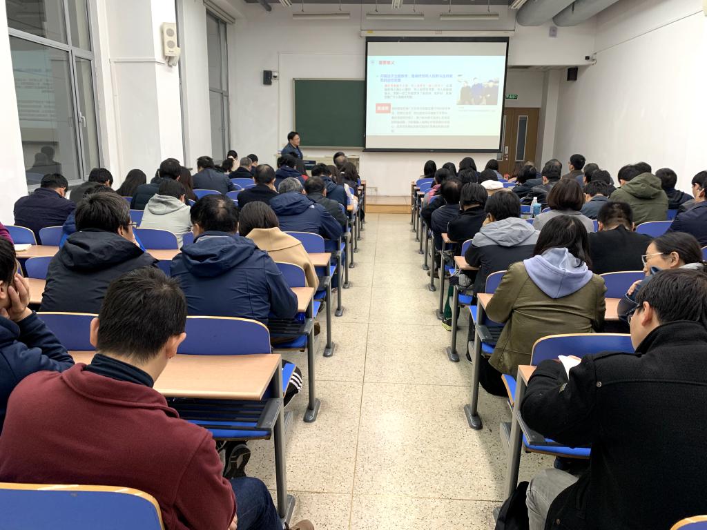 林贵平书记主要从“不忘初心、牢记使命”主题教育的重要意义、总要求、北航人的初心与使命等五个方面展开,对教师党员在主题教育期间各个环节的具体工作提出进一步要求,指出各党支部要充分利用教师“学习日”活动,提升学习教育效果。随后,在前期广泛征求意见和调查研究的基础上,林贵平书记针对学院沙河校区搬迁、公有房收费政策等问题做深入解读。林书记强调,我们要抓住沙河校区搬迁的重要机遇,坚持“合理布局、资源整合、共建共享”的原则,从战略的高度、发展的角度,系统梳理学科方向,深度凝练,以科学务实的精神抓好规划工作。