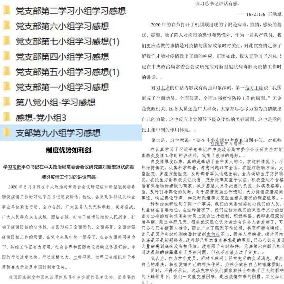 作为党员,认真学习体会党中央、上级党组织的决策部署并坚决贯彻执行,是我们的基本要求。疫情防控期间,无法举办线下支部会,我们充分利用线上资源,开展线上学习,通过学习习总书记在《求是》杂志发表的理论文章:《在中央政治局常委会会议研究应对新型冠状病毒肺炎疫情工作时的讲话》,观看疫情防控相关视频节目等方式,提升自身认识,做好自身防控的同时带动身边家人保护好自己,将知识、体会转化为保护自身及群众的有力武器。