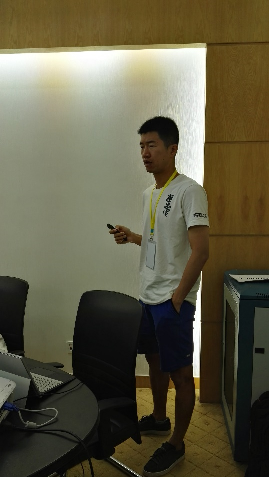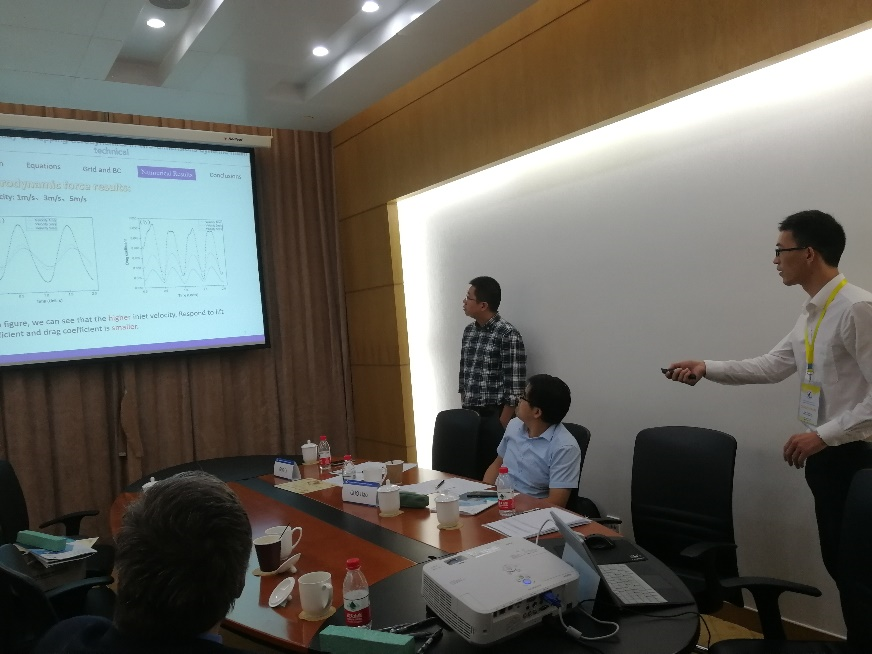 由于报告原作者山东交通大学的管宁临时有事,高翔代其作了题为《Influence of Heating Wall on Vortex Shedding in Transient Flow Pasting Micro Cylinders》的宣讲。
