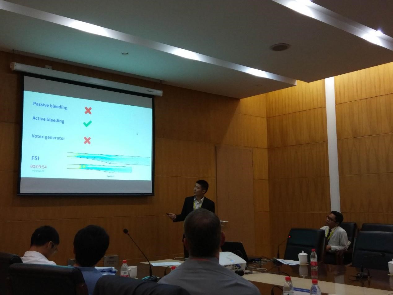 姚程的报告题目是《Cavity based Forced Shock Oscillation Control in a Transonic Diffuser》。