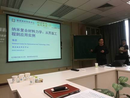 4月27日,受鲍蕊教授和杨嘉陵教授的邀请,国家纳米中心张忠研究院到我院固体力学所做特邀报告。报告的题目为纳米复合材料力学:从界面工程到应用实例。该报告吸引了我校不同院系的大量师生前来参加。