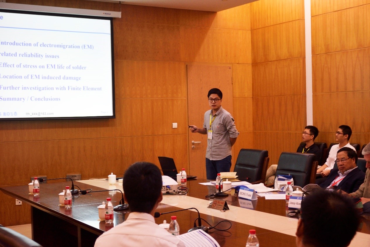李腾辉的报告题目是《The Roleof Stress in the Electromigration Damage of Solder》。