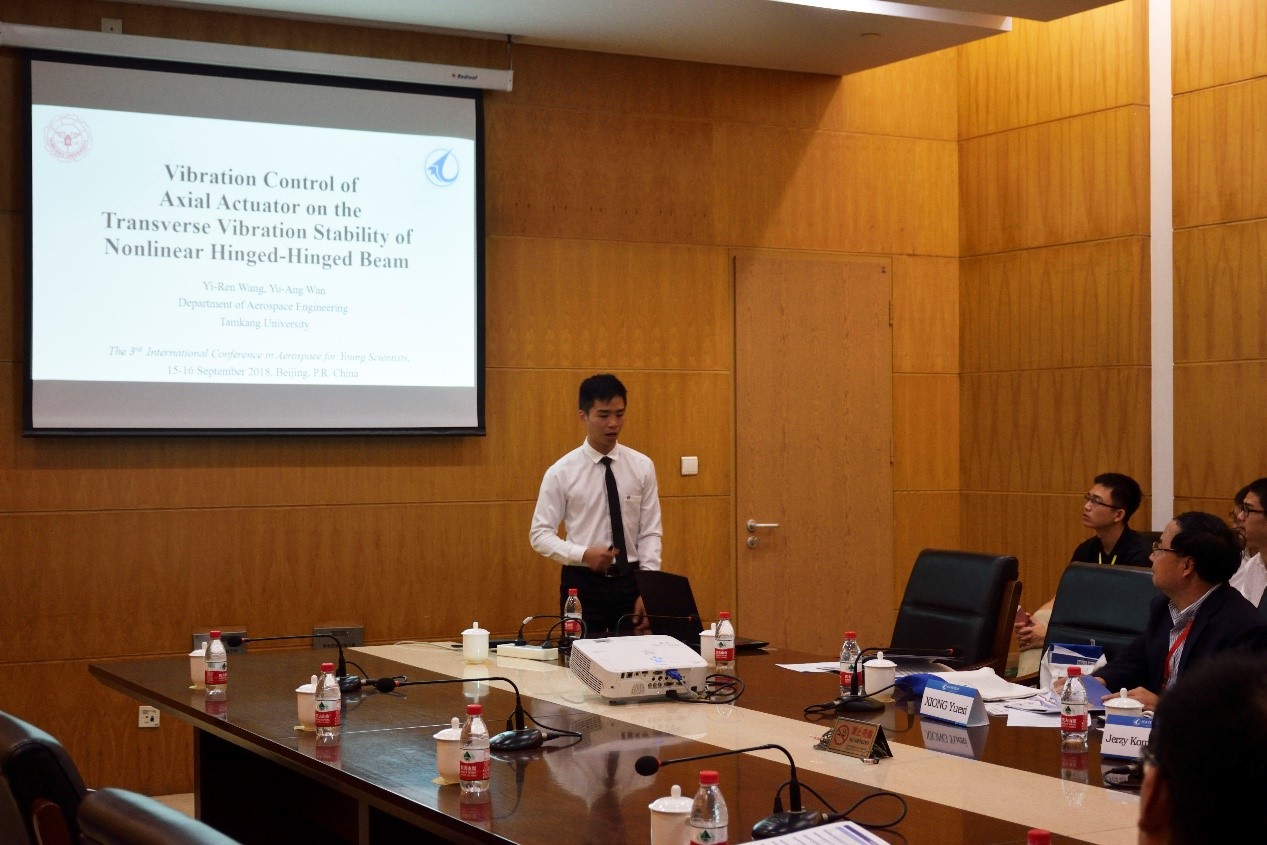 Yu-Ang Wan的报告题目是《Vibration Control of Axial Actuator on the Transverse Vibration Stability of Nonlinear Hinged-Hinged Beam》。