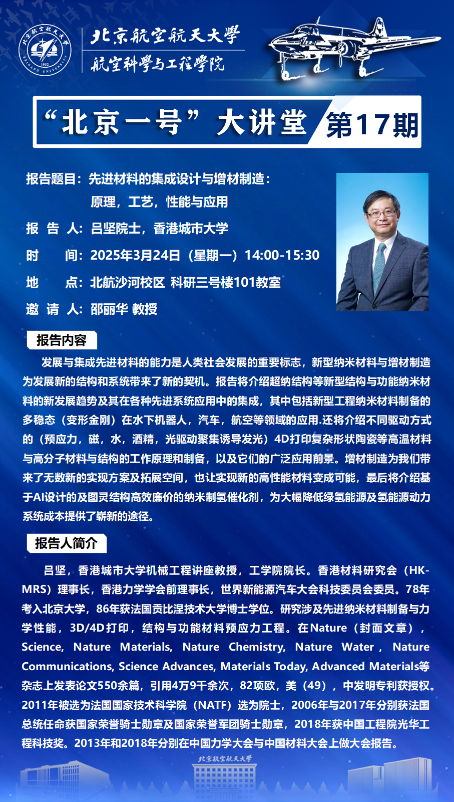 报告地点:北航沙河校区 科研三号楼101教室