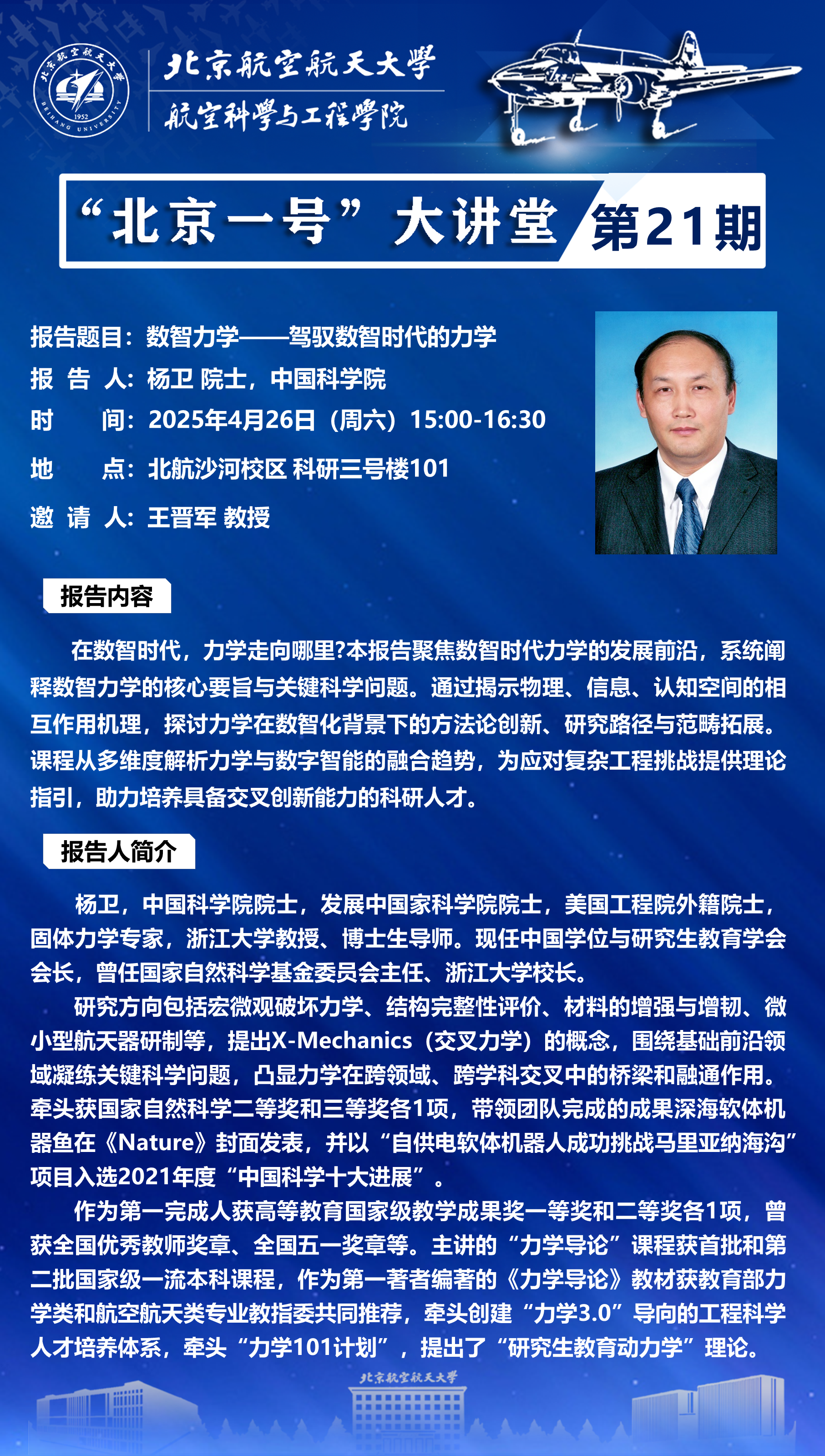 报告地点:北航沙河校区 科研三号楼101教室