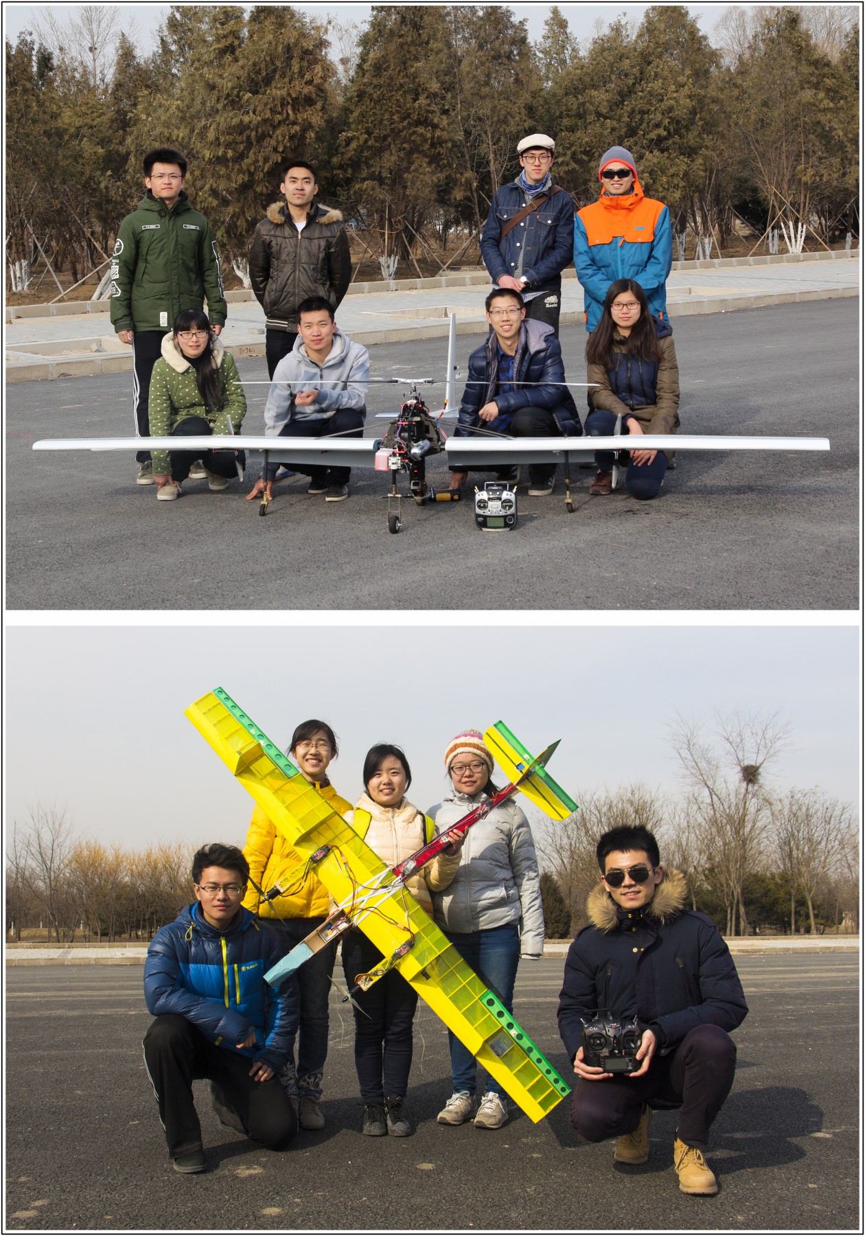 复合式飞行器项目为累进创新项目,项目成立至今已经4年,不断加大项目难度,在复合式飞行器的领域持续探索,累计产生了4代机型,在各类国内科技创新类比赛中屡获荣誉。为参加本届冯如杯,项目继承了历代机型的优势,加大项目复杂程度,达到了工业级无人机的设计制作水平,从2015年6月就开始设计、制作、试飞,在本次试飞中,顺利完成了不同襟翼状态的最大起飞重量实验、直线航线飞行等科目。