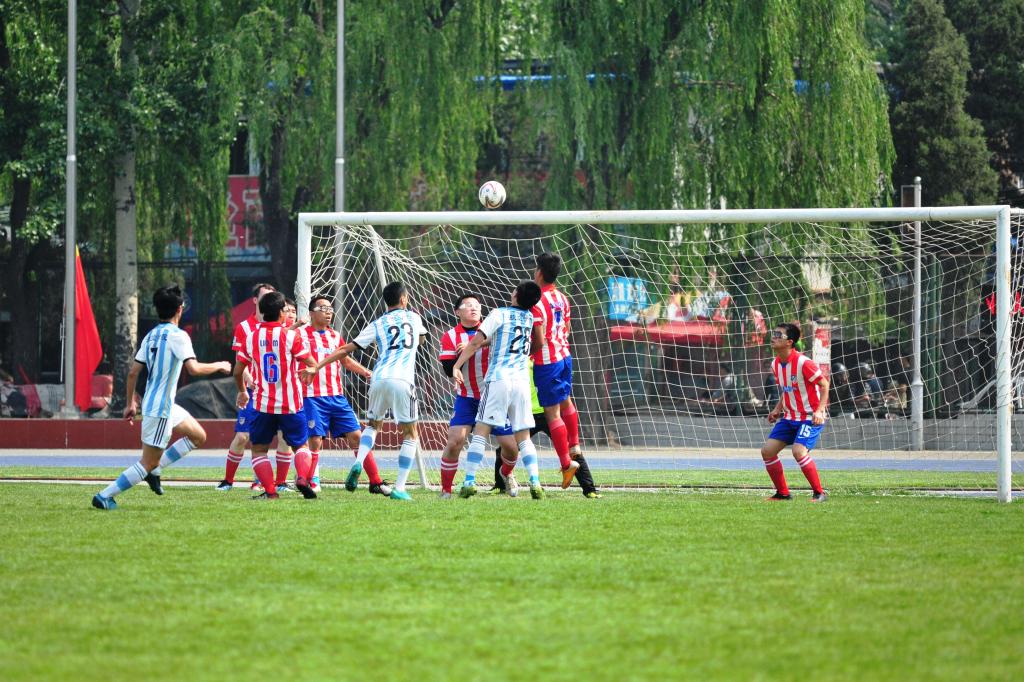 下半场开场后交通学院大举压上进攻,在浪费了多次机会后,通过一脚运气球扳平了比分。这个进球激发了航空学院全体球员的斗志。5分钟后,航空学院16号赵志刚在对方禁区内接到10号曹昊横传球,冷静晃过对方后卫后一脚抽射,航空学院2比1再次领先。由于天气炎热,场上双方队员拼抢过于激烈,很多人都出现了抽筋的状况而后被替换下场。就在比赛快要结束时,曹昊通过个人能力连突对方四名球员,面对门将冷静捅射,再入一球锁定胜局。