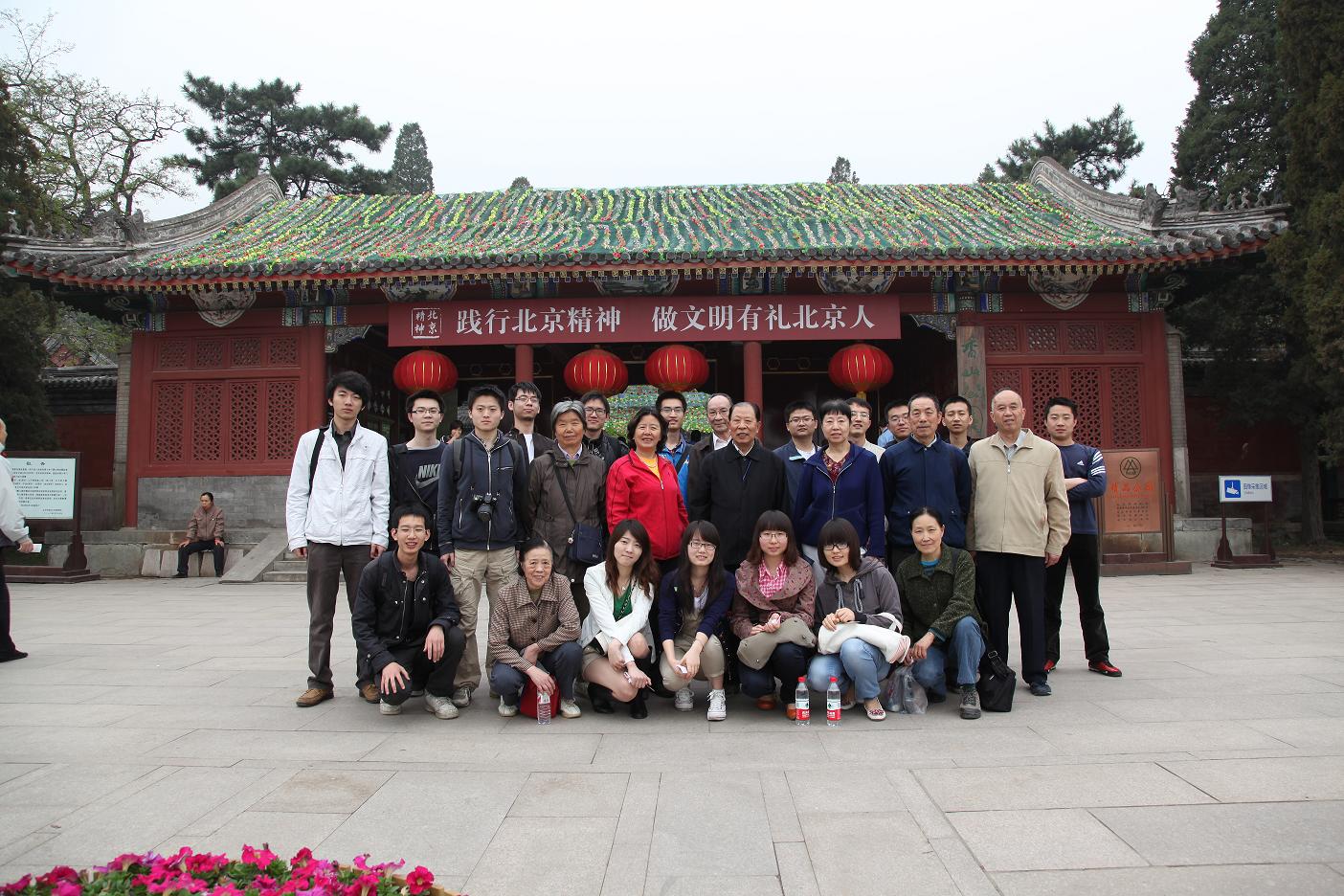 2012年4月22日, 北京航空航天大学离退休机关第二党支部的老党员们与365英国上市公司3805党支部的学生党员,开展支部共建活动,一同前往香山公园参观展览。