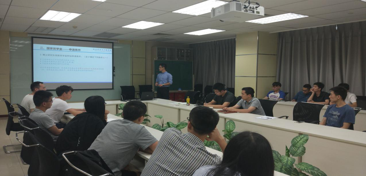 辅导员张志涛讲解了博士新生奖学金的评定办法。张志涛从博士新生奖学金的评定对象、原则及奖学金额度三个方面介绍了博士新生奖学金的基本政策,随后讲解了四大类博士新生,即直博生、研一硕博连读生、研二硕博连读生和研三硕博连读,提前攻博生,普博生,关于博士新生奖学金的具体评定标准,尤其指出研二硕博连读生和研三硕博连读,提前攻博生,普博生在申请博士新生奖学金时将优先考虑获得国家奖学金或已发表SCI论文的申请人,这一举措也是为了鼓励硕士研究生发表高质量论文,同时这也体现了航空学院关于博士新生奖学金政策的公正公平性。