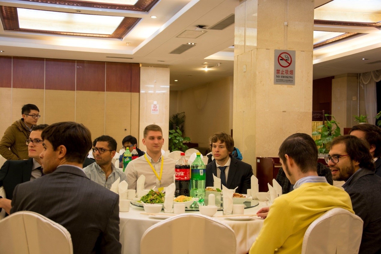 所人力资源部蒋平部长、井涛老师、周世俊老师以及参与学术会议的中外教授和青年学者们。餐会由北航365英国上市公司分团委副书记胡天翔老师主持。