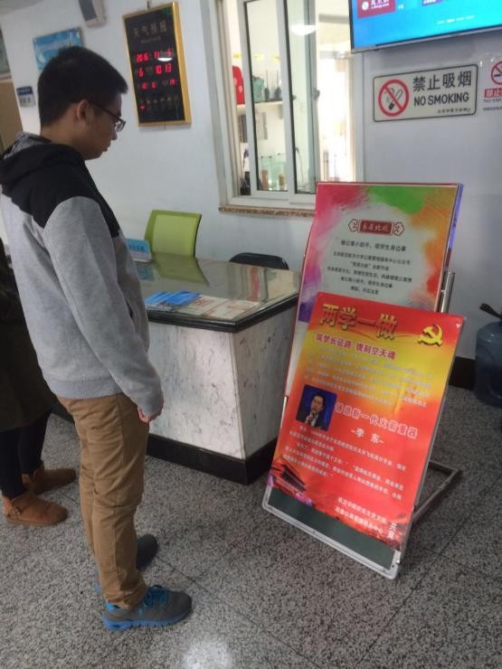 11月5日上午9点30分,党支部书记带领部分支部同学,在学生公寓展开了主题宣传活动。一行人带着宣传海报从学生公寓3号楼开始,依次在学生公寓5号楼、6号楼等11栋校内公寓及大运村1-9号学生公寓内进行主题宣传和海报张贴工作。活动期间,同学们受到了公寓管理人员的热情接待和帮助。公寓内不时有经过的同学驻足观看讨论:“我们楼里都是博士生,你们的活动对大家有积极的影响,张贴校友事迹的海报对我们有鼓励作用,你们多贴几张吧。”“你们这个活动好啊,这都是我们北航的校友。你看这个长征5号的总设计师,就是89年毕业于北航的,非常年轻,都是人才!”“你们的活动对我们公寓的文化提升有很积极的作用。”