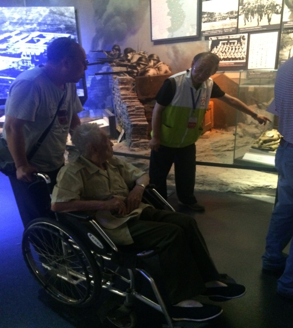 终于,我们缓缓进入了最沉重的一个展厅——南京大屠杀展厅,一幕幕历史惨剧历历在目,惨相已让人目不忍睹,不忍停留。血痛教训告诉我们,历史永远不应该被忘记,更不能被重演。在经过一个日本刑具旁边时,我们看到一位精神矍铄的志愿者对着一位年纪相仿的老兵说道:“我们举行抗日活动不是为了宣扬仇恨,而是为了警醒国人勿忘历史!”让我们向他们致敬!