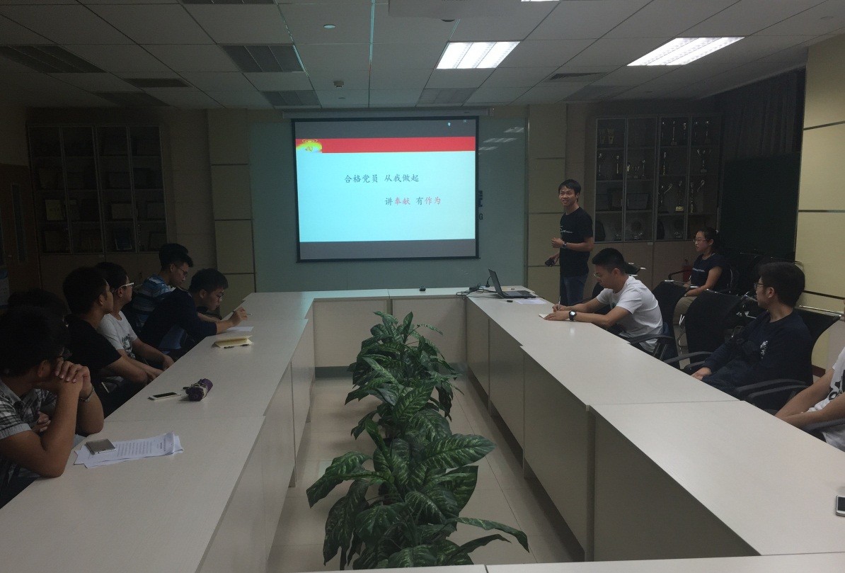 图1 2016年9月18日,硕士16051党支部开展以“回顾‘九一八’,自鉴知与行”为主题的爱国主义学习教育,宣传委员陈天雄同志带领大家回顾了“九一八”这段难忘的历史。