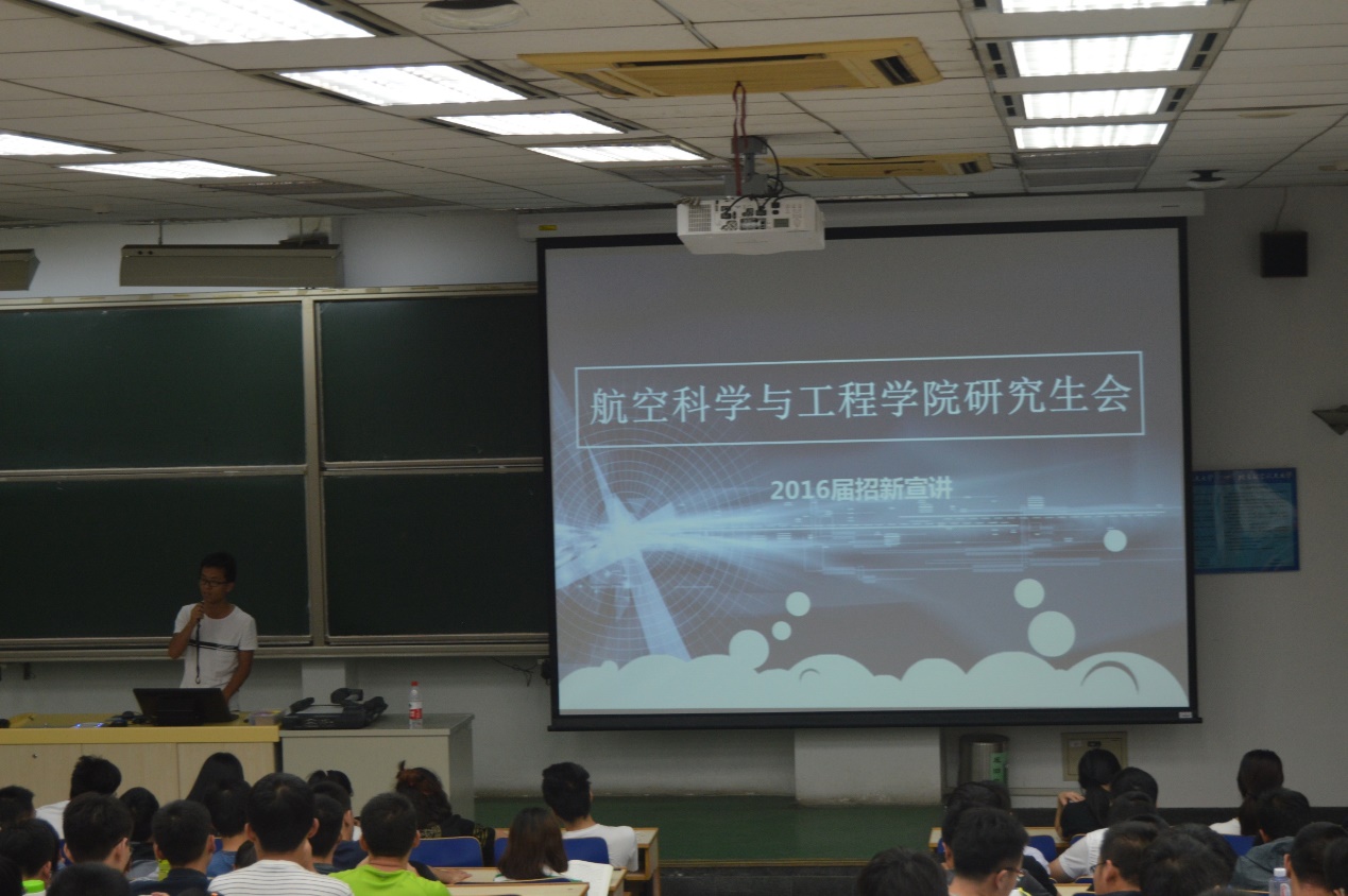 接下来,学院研究生会主席李小琪同学介绍了研会基本情况,随后研会各部代表分别上台进行宣讲,他们激情四射的宣讲给同学们留下了深刻的印象,相信在他们的感召下,更多的新鲜血液将注入航院研会,为研会的发展壮大添砖加瓦。