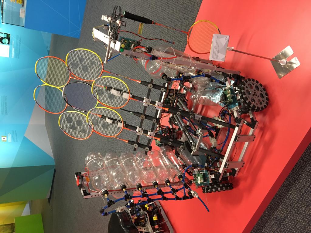 进入教学楼的内部,来到了香港科技大学25th学生科技作品展,如同北航“冯如杯”作品展一样,“创新·生活”,“科技·未来”等不同主题的展品陈列在教学楼内。“打羽毛球机器人”,“新型纳米材料”……充满科技创新特质的展品让我们惊叹不已。在这里,我们看到了港科大学生身上散发的青春与活力,也为自己的学习生活提供了帮助。走到教学楼的尽头便可以看到远处的大海,美丽的风光尽收眼底。恰好天边飘来一朵云,海风一吹,飘起了小雨,在这片安静而祥和的地方,让人陶醉,不愿离开,可以说港科大的校园是游学到今天以来环境最好的校园。羡慕港科大学生这美丽的学习环境,也看到了自身与世界一流大学学生的差距。