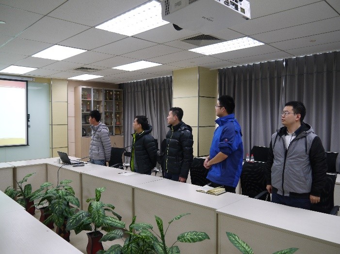 会议开始,王森同学带领大家唱国际歌,充分调动了大家的学习气氛。