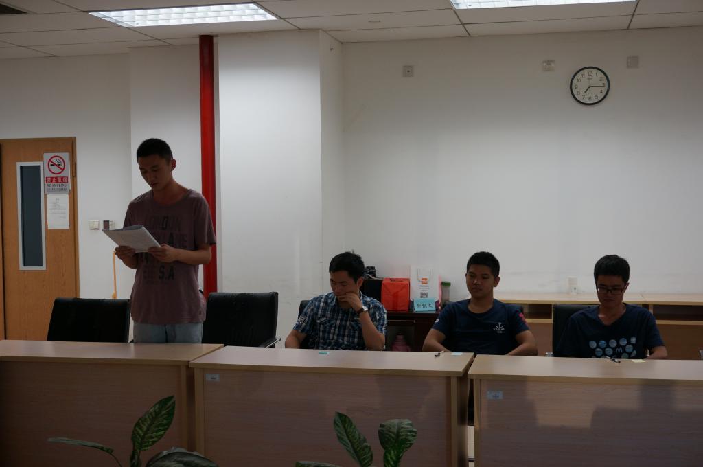 大会开始,首先由党支部书记张超普同志主持本次大会开始。然后,张澜川同志宣读了自己的入党志愿,汇报了作为积极分子的一年之中的学习和成长,大家深受打动和鼓舞;接下来,由张澜川同志的第一介绍人王照瑞和第二介绍人庄天义分别发言,两位介绍人简要介绍了张澜川同志的优点与不足,鼓励他再接再厉,推荐入党。最后,全体党员投票选举,全票通过,同意张澜川同志转为预备党员。