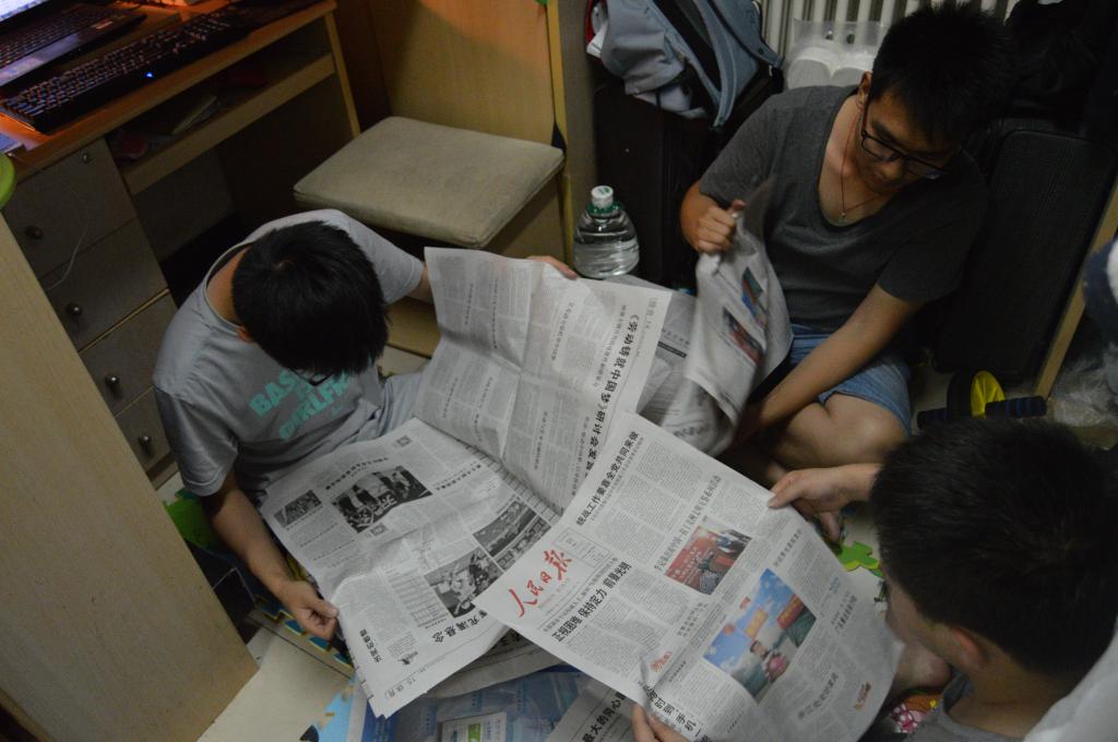 2015年5月25日晚,ZY14053党支部组织支部成员在宿舍一起阅读人民日报,一起探讨分析个人理解。人民日报大概每隔一个月都会给支部每位成员发一次,这样有助于支部成员学习理论知识,提高读书看报能力,对党的建设有更多的了解。