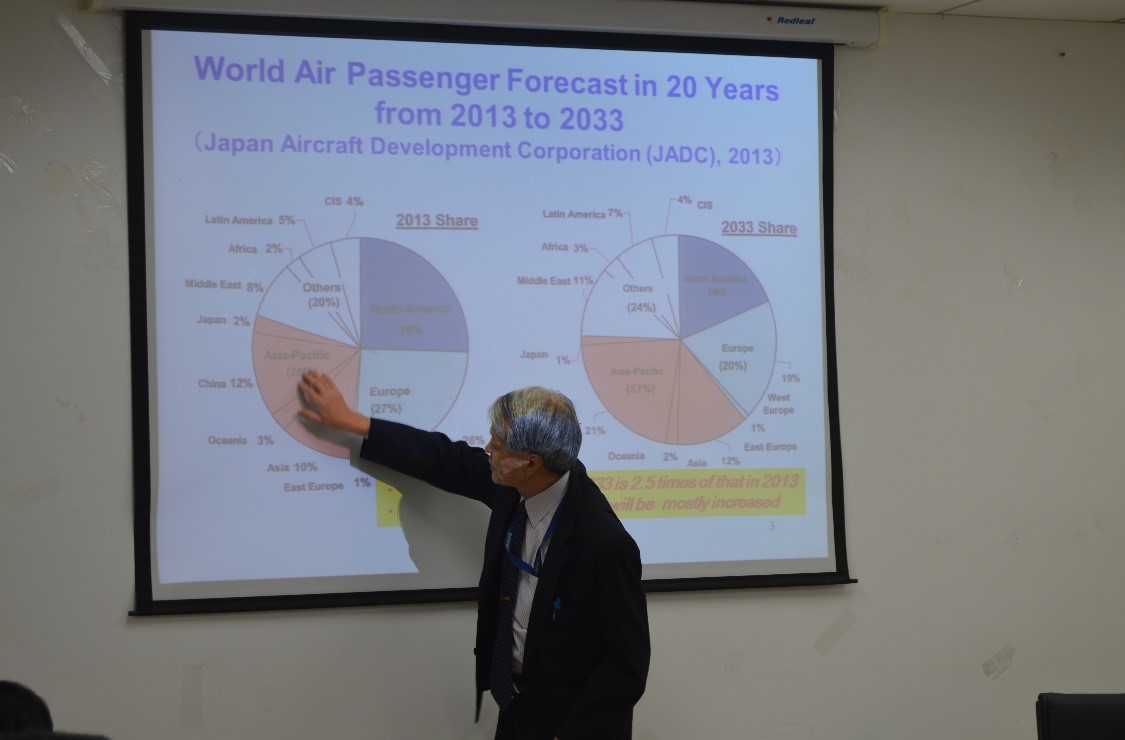 此次邓学莹老师邀请学者-日本东京大学的久保田教授做航空前景学术报告,他的报告题目是《下一代超音速运输的环境问题》。这次报告不仅吸引了很多老师和同学,还有不少的国际学生。由于久保田教授不会汉语,整场报告都是由英语讲述。尽管这样,同学们还是听得很认真,不时地做笔记。报告完后,教授与在场的老师和同学们做了热情地互动,老师和同学们争先提问,久保田教授均耐心细致地作了解答。