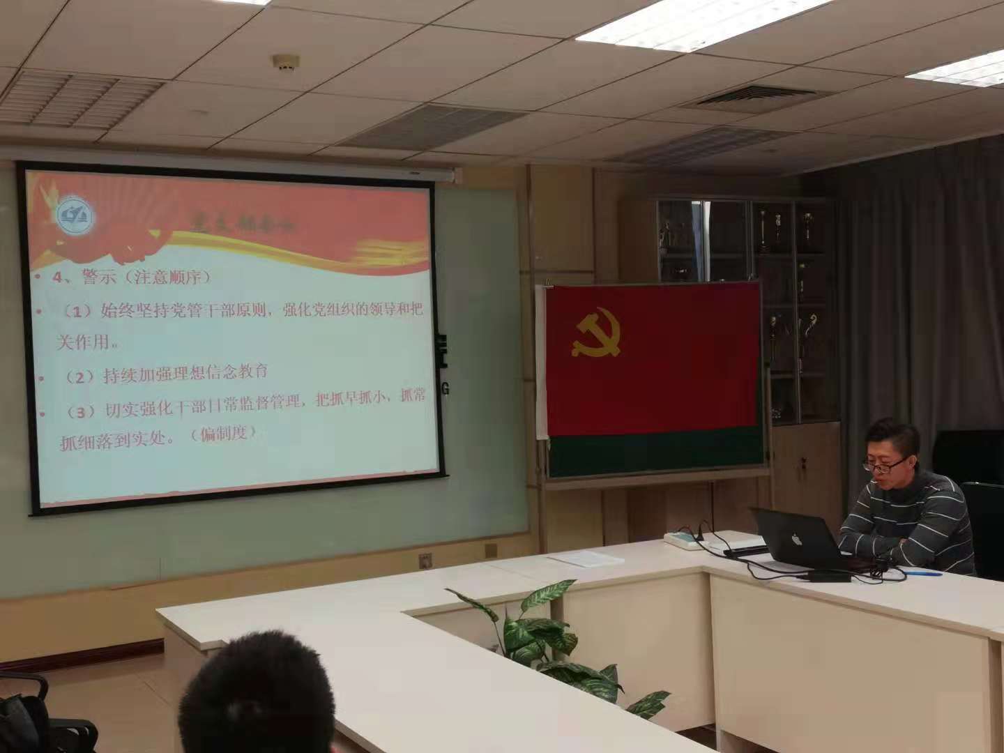 刘明阳同志则针对李洪彦同志在档案材料中大量作假妄图享受更高级待遇违纪被查一事为例,分析出了李洪彦同志贪图名利、相关人事部门不尽职尽责、社会团体管理不严谨的事实,警示我们:1.要始终坚持党管干部的原则,强化党组织的领导和把关作用;2.持续加强理想信念教育;3.切实强化干部日常监督管理,把抓早抓小,抓常抓细落到实处。刘明阳同志以反面典型为例,希望同志们能够引以为戒、总结反思,在自己日常生活中警觉起来,时刻绷紧理想信念的弦,不要走向人民的背立面。此外,刘明阳同志还针对转正申请、预备党员同志信息录入工作进行了讲解和部署。