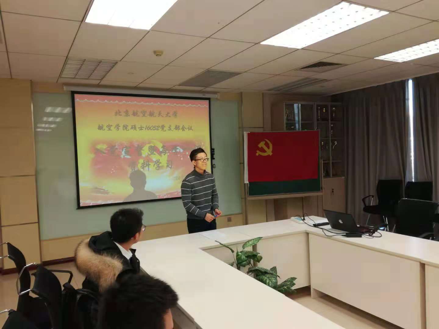2018年12月4日15时,北航航空学院硕士1605二党支部在C708召开支部会议,本次会议的主要内容为预备党员入党宣誓以及每季一课资料学习。本次会议由党支部书记刘明阳同志主持,应到23人,实到23人。