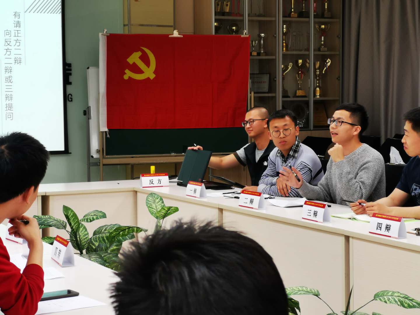 辩论赛过程中论题两方各持己见,在立论、攻辩和自由辩论环节中各位辩手思路清晰、唇枪舌战。双方紧凑的攻辩使现场气氛高涨,迎得了观众的阵阵笑声和掌声。支部观赛的同志也对辩论赛发言内容认真笔记,并在自由辩论环节积极参与进一步阐述本方所持观点。