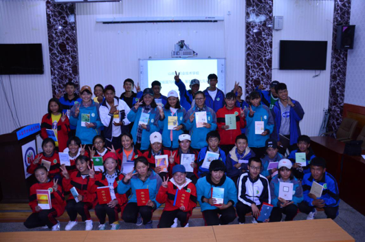 另外,创新工作的三个党支部还为藏族同学们设计了一份学习知识手册,并准备了很多来自北航的小礼物,意在提高学生的航空航天知识素养、培养学生热爱读书的兴趣爱好。山南市职业技术学校也为此在校内举办了“航空航天知识竞赛及阅读赠书”活动。此次活动中,该校刘战强老师向学生讲述关于航空航天的有关知识,让同学们了解我国及世界各国的航空航天实力,并在随后的航空航天知识竞赛中,选出成绩优异的几位同学,依次颁发奖品,除此之外,每位同学最终还受赠了由党员同志们寄发的书籍。