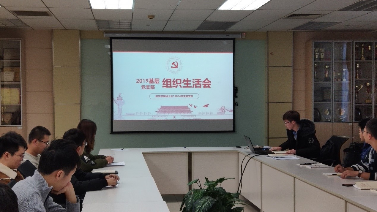2019年12月14日,北航航空学院硕士生19054党支部在新主楼C708召开组织生活会,会议由支部书记王培生同志主持,2019级硕士生辅导员马奎元同志列席参加。