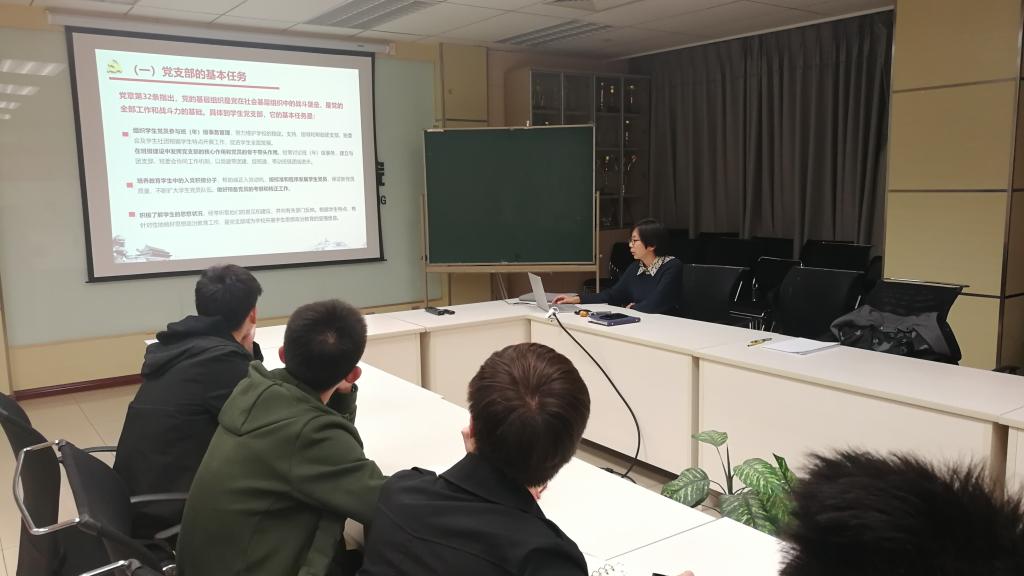 孙老师具体介绍了发展党员工作和党员E先锋系统的操作使用,指出线下与线上同步发展党员是规范党员发展流程、形成有效监督的需要,为党支书们详细说明了E先锋系统的使用流程。