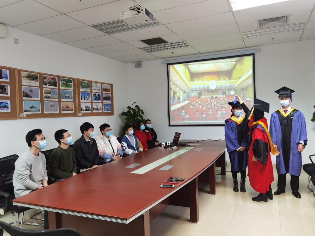 于此同时,我院积极号召课题组,自行举办立德树人课题组的分会场,同时进行分会场毕业典礼的直播。尽管为满足疫情防控要求使得分会场人员不能过多聚集,但是课题组的直播让毕业生们感受到来自导师们的关怀与注视。虽然不能像往年一样大家齐聚一堂,共同庆祝,但是在这个冬天,温暖长存。
