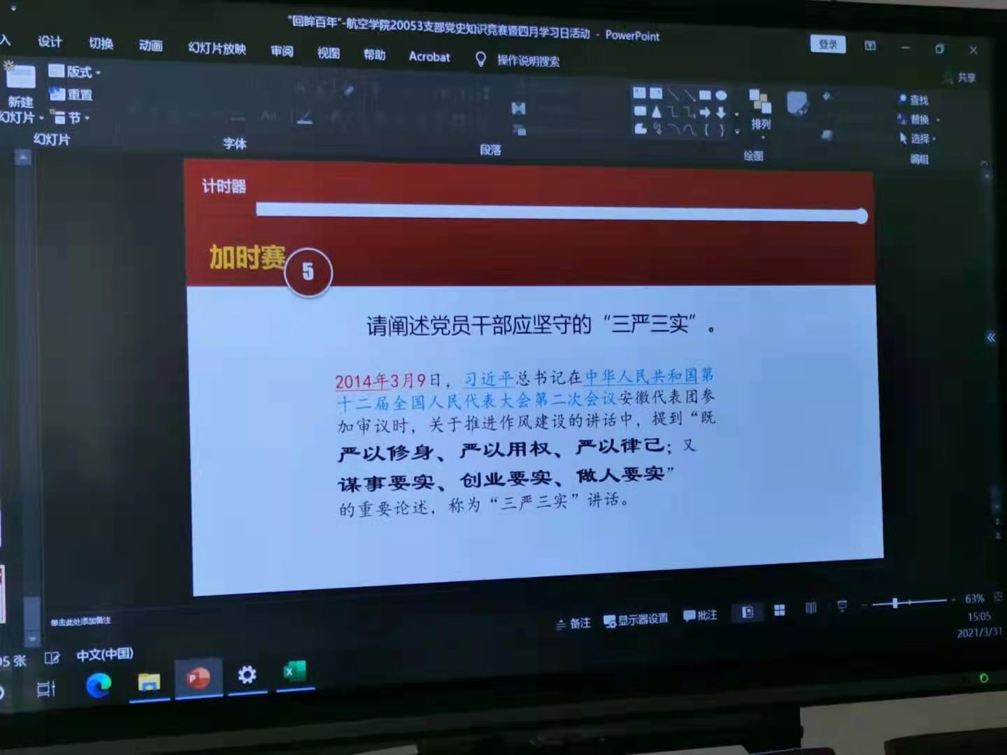 为深入贯彻落实习近平总书记在党史学习教育动员大会上的重要讲话精神,提升党史学习积极性,3月31日下午,硕士生20053学生党支部于新主楼C828开展“回眸百年”党史知识竞赛活动,活动由党支部书记蔡能府同志主持。