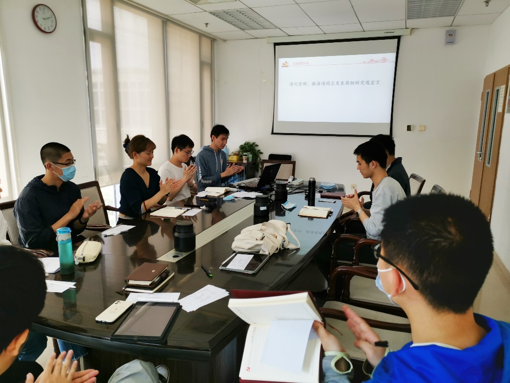 学习日开始前,支部对宣传委员和纪检委员进行了补选。支部全体同志对两名前任支委的辛勤工作表达了感谢。随后,支委候选人代雪妍同志和撒海靖同志先后发表了简短的宣言。经在场党员投票表决,支部一致同意代雪妍同志担任支部宣传委员,撒海靖同志担任纪检委员。