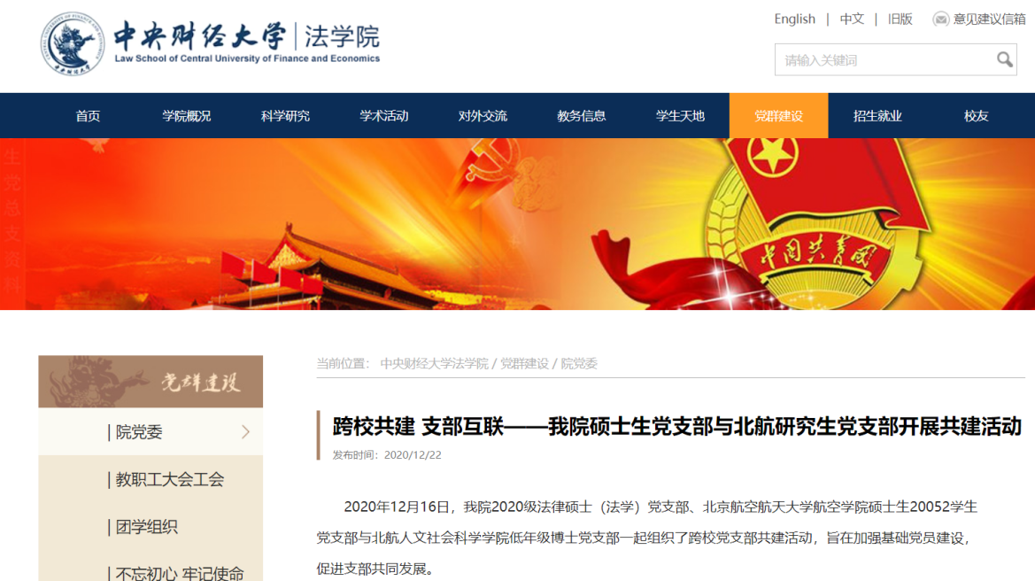图3 央财法学院官网的报道