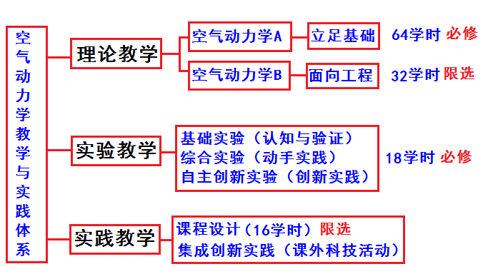 在实验实践教学体系方面,坚持以理论教学为主导,整合空气动力学实验教学科目,根据学生的认知过程,分基础性实验、综合性实验和创新实践三部分,形成分阶段、分层次、进级型的培养模式,增设课程设计和课外科技活动,增强学生的集成创新意识的培养。