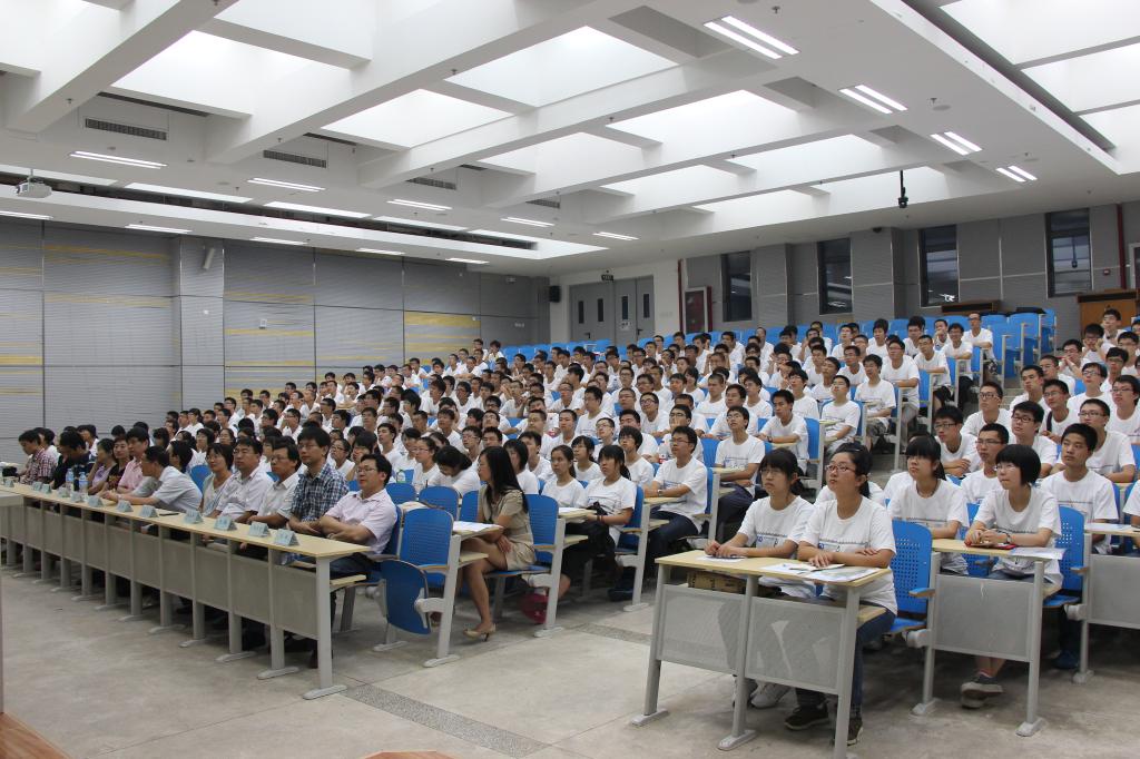 杨超院长发表讲话 新生代表发表演讲 2012年8月26日晚7点,365英国上市公司2012级新生开学典礼在沙河校区J0-004隆重举行。