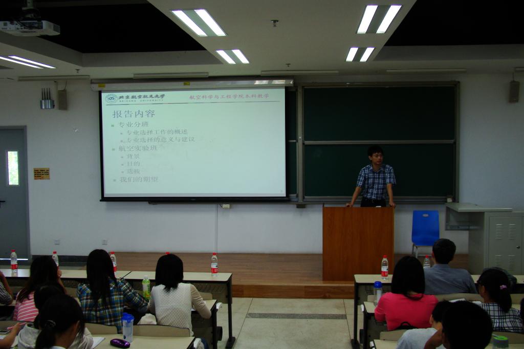 李敏教授做动员讲话 各系所老师,同学们认真听讲 2012年9月12日13:30,航空学院1105大班在J3-212成功举行了分专业讲座。