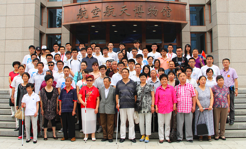 2013年6月15日上午10点,我校航空航天博物馆学生志愿服务中心的讲解员以及来自航空学院1005党支部的30名党员,共同接待了一批特殊的游客——来自天津的30位盲人朋友。