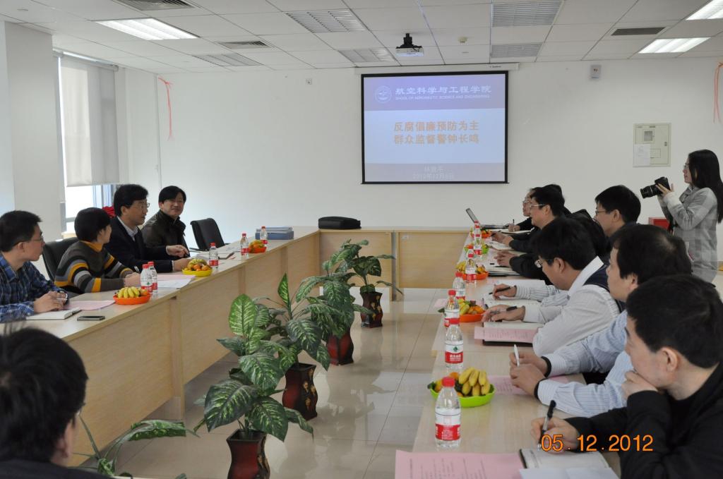 怀进鹏校长讲话 纪委办主任 张海兰 航空学院院长 杨超 航空学院党委书记 林贵平 2012年12月5日上午,怀进鹏校长带队的纪委检查组来我院进行2012年度党风廉政建设专项检查,检查组随行的成员还有:纪委副书记、...