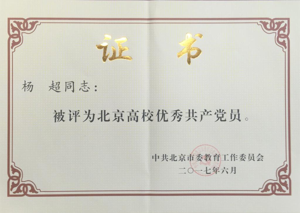 我院杨超教授被授予“北京高校优秀共产党员”称号